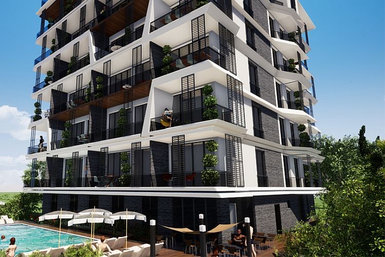 Квартира расположена на шестом этаже нового строящегося комплекса бизнес-класса. К услугам жителей - бесплатные шезлонги на местном пляже. До него около 10 минут ходьбы. Есть возможность приобрести машино-место в паркинге за 15 тысяч евро.