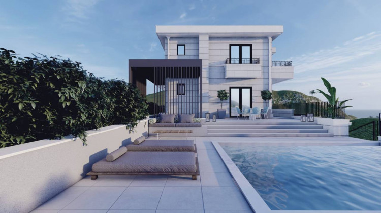 Продажа трех вилл с бассейном в Черногории, в поселке Риека-Режевичи, район Поляне, на Будванской ривьере. Общая площадь участка составляет 1955 м2. Срок завершения строительства - июль 2023 года.